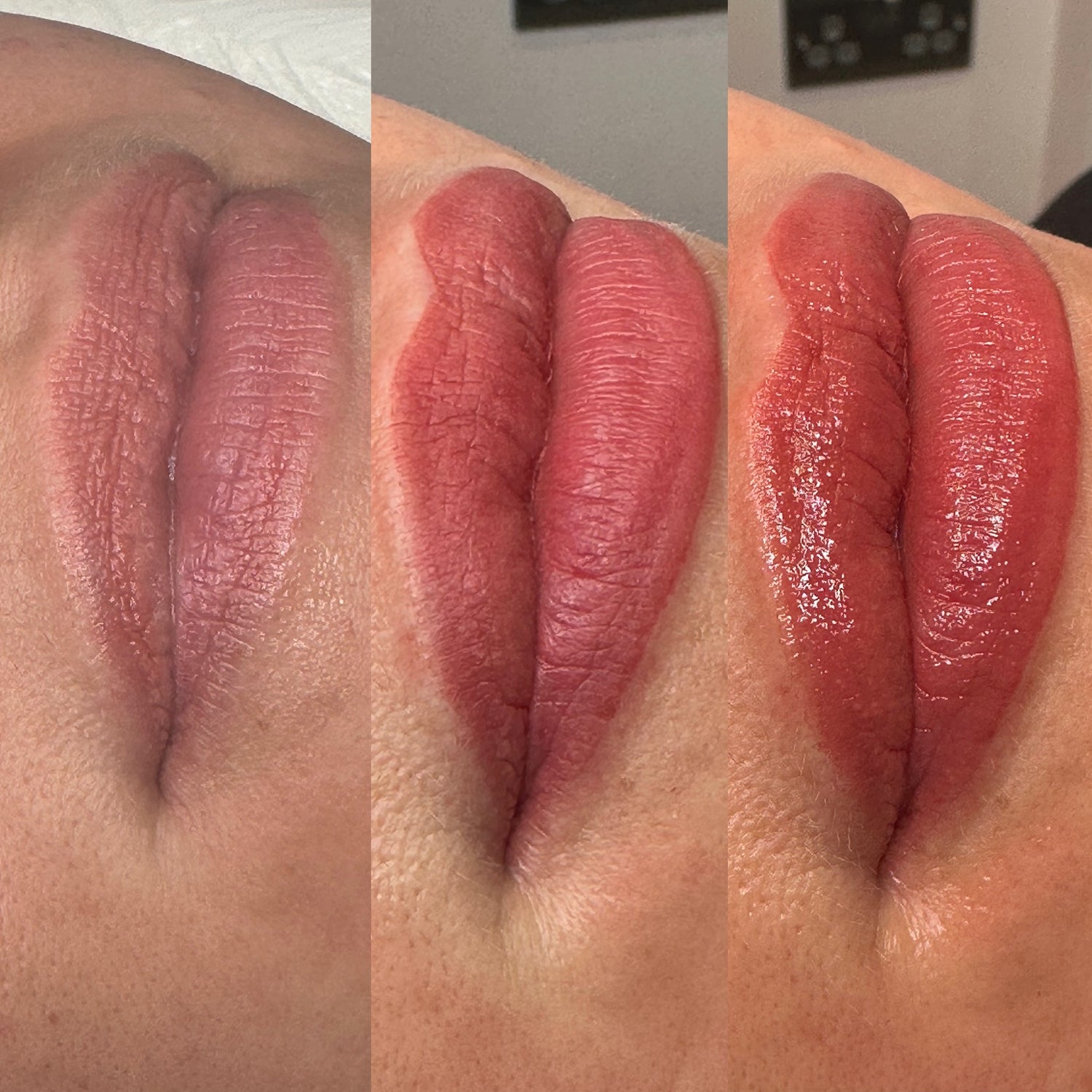 Lip blush is a semi-permanent cosmetic tattoo designed to enhance the natural colour, shape, and definition of the lips. It is popular for its low-maintenance appeal, eliminating the need for daily lipstick, while giving the lips a youthful, even-toned, and polished appearance.